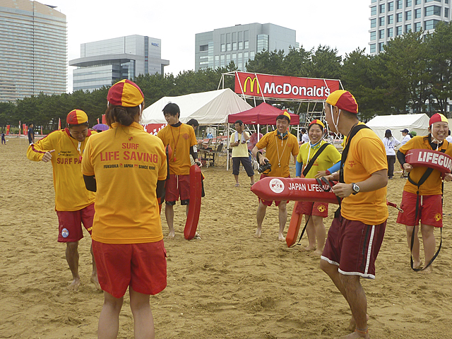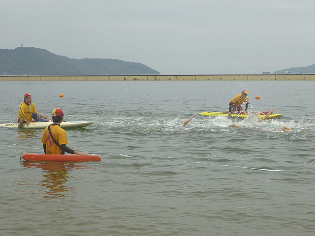 福岡ライフセービングクラブは、初期の頃からこのスイムレースの警備依頼を受け、協力参加しています。